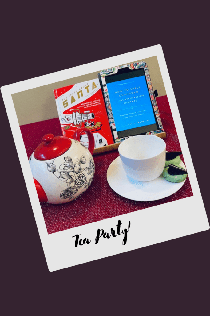 Slowing down during the holidays is especially welcome. Taking the time to have an old fashioned tea party for one makes me feel fancy. Doing so with a book to keep me company is extra decadent. Today I flipped back and forth between How to Spell Chanukah and The Truth About Santa. I finally managed to repair the mistakes I made on the cookies from yesterday and they were delicious. And, in the off chance you think my Mom spoils me, you are absolutely correct. Yesterday I opened an early Christmas present – a fancy wooden box full of tea!